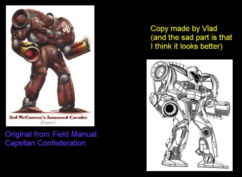 I really need to know because right now we have to put more funds into the art. I need to know what is acceptable and what is not. Up until now the issue has been clear: if it looks like the art we have is a tracing of the original, I can’t use it. You have no idea how many of the original ‘Mechs I have rejected because of this. The vehicles too. But now it seems there are more to be replaced. I will gladly pay for it but it will take longer.